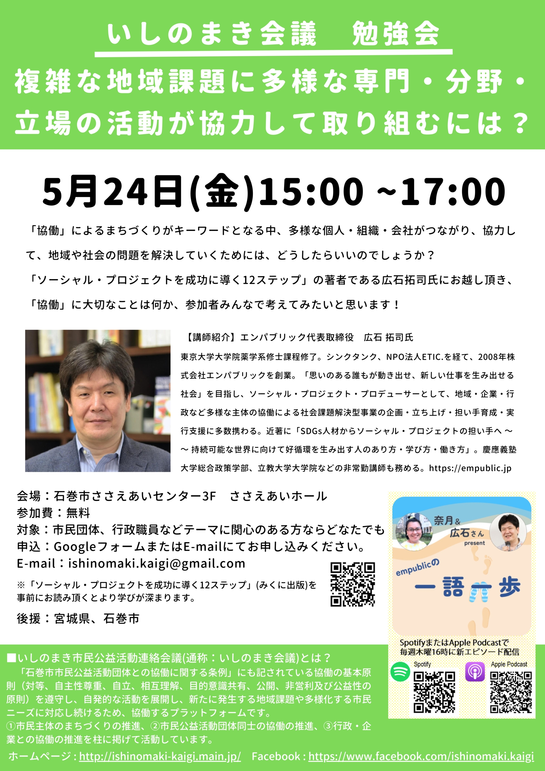 主催:いしのまき市民公益活動連絡会議(通称:いしのまき会議)